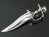 S字に曲がった刃を備えた短刀は同じくインドのカンジャルリが有名ですが、その中でも「花のような形の」と形容される柄のものを特にチラニュムと呼ぶようです。