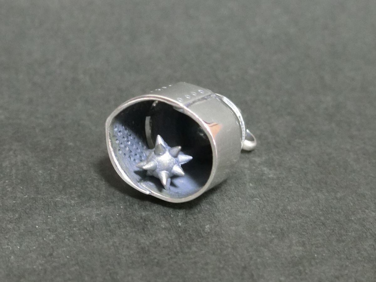 グレートヘルムをベルにしてみました。シルバー925製、丸カンの仕様は他のペンダントと同じです。