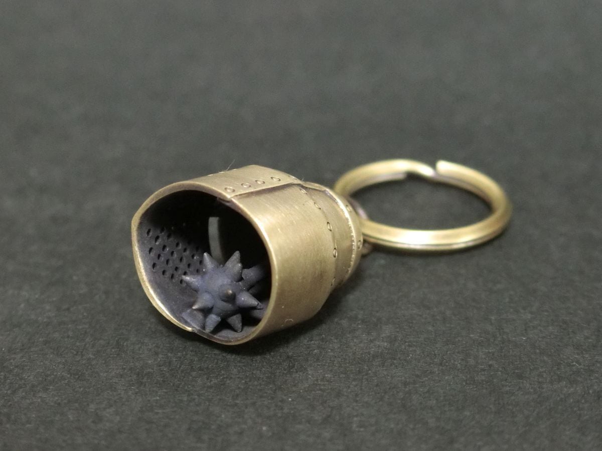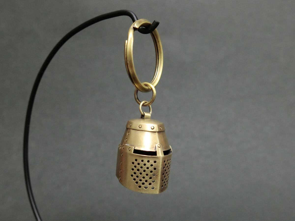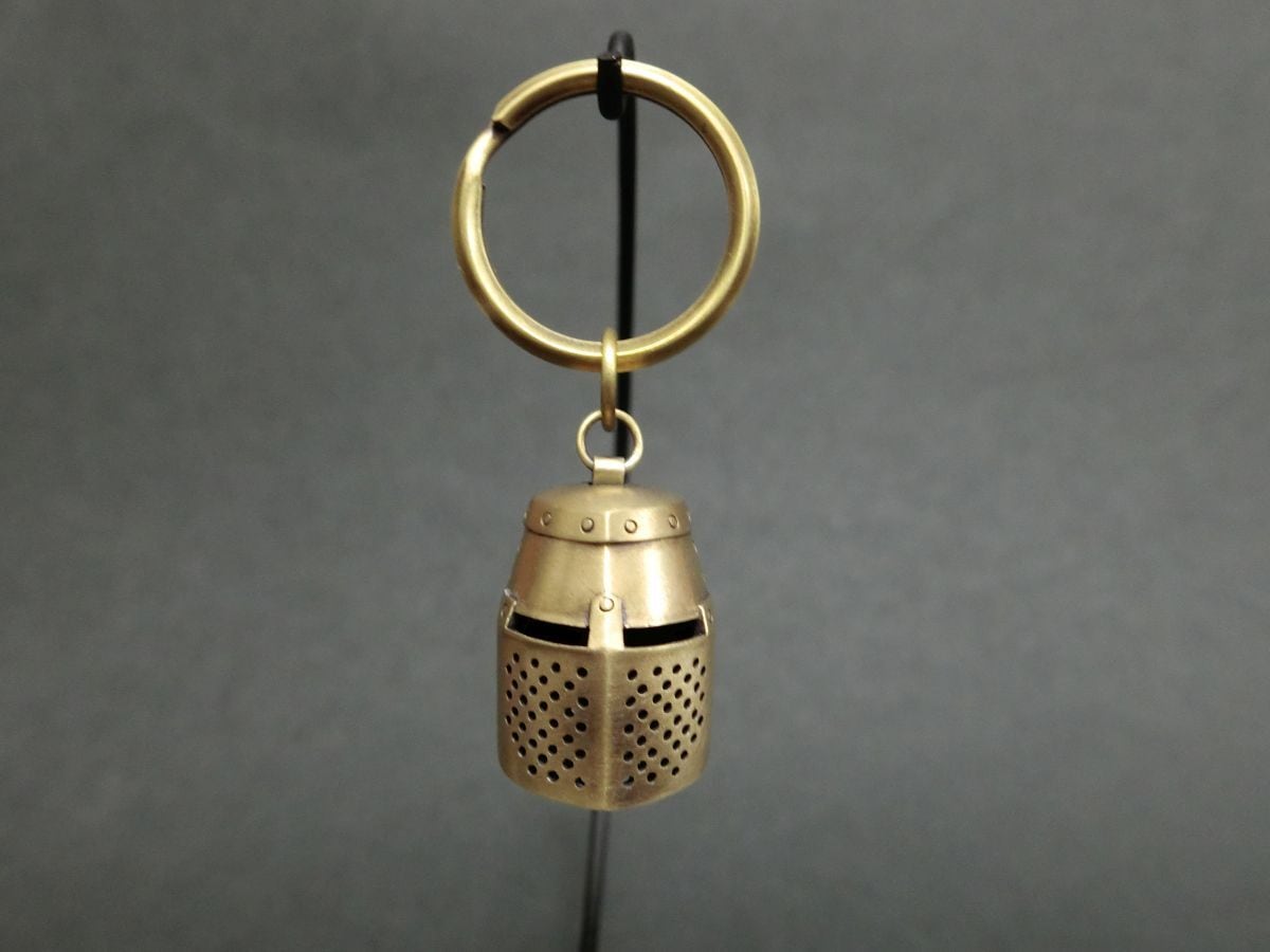 グレートヘルムをベルにしてみました。真鍮製、二重カンの仕様は他のキーリングと同じです。