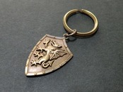 盾のキーリングです。ドラゴンのレリーフを張り付けてあります。真鍮製。