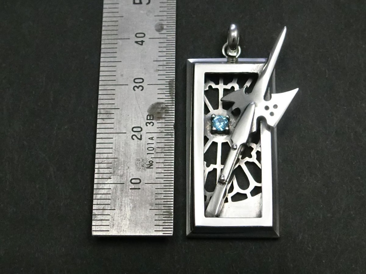 ハルベルトが枠からはみ出しているデザインのペンダントヘッドに、バラ窓風の装飾とストーンを1石追加したスペシャルバージョンです。SV925製。