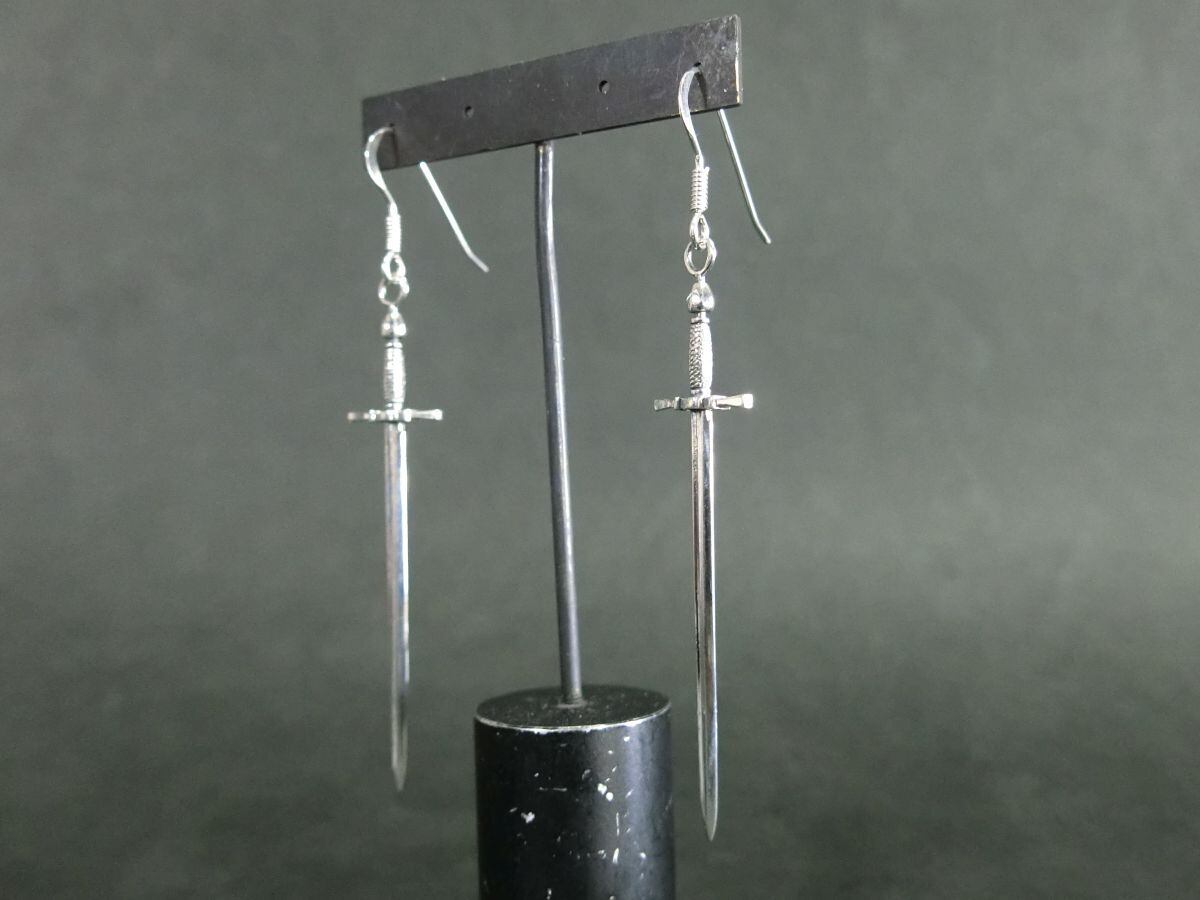 ロングソードペンダント、ロングソードキーリングと同じ型を使って作ったピアスです。
